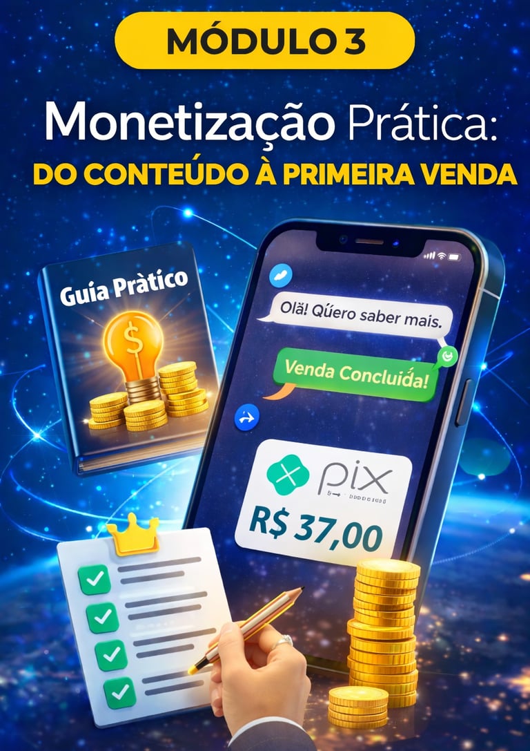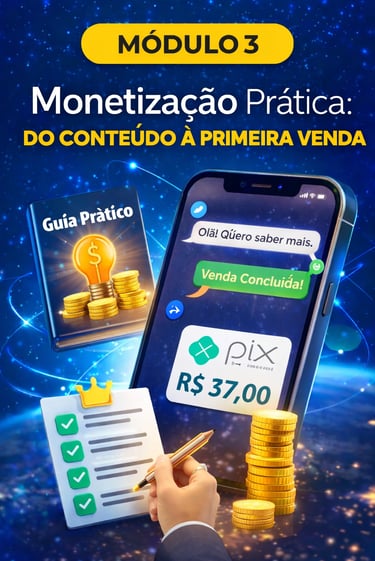 Você receberá um método prático em 3 módulos, que te ensina do conteúdo à monetização para gerar renda extra usando as redes sociais.